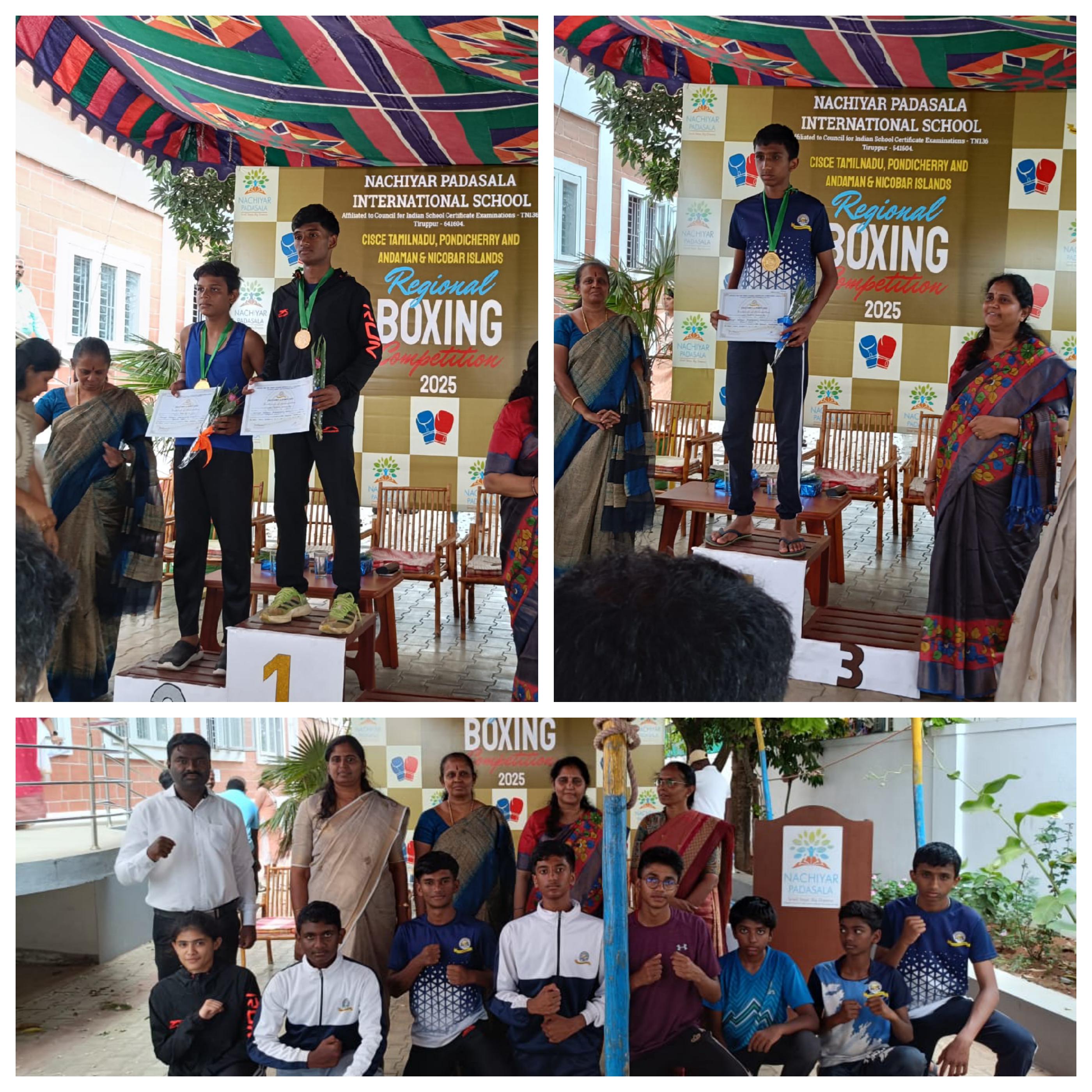 The Nachujar Padarhala International school hosted the CISCE Tamil Nadu, Pondicherry and Andaman and Nicobar Islands Boxing competition 2025. Four students from our school participated in this competition namely