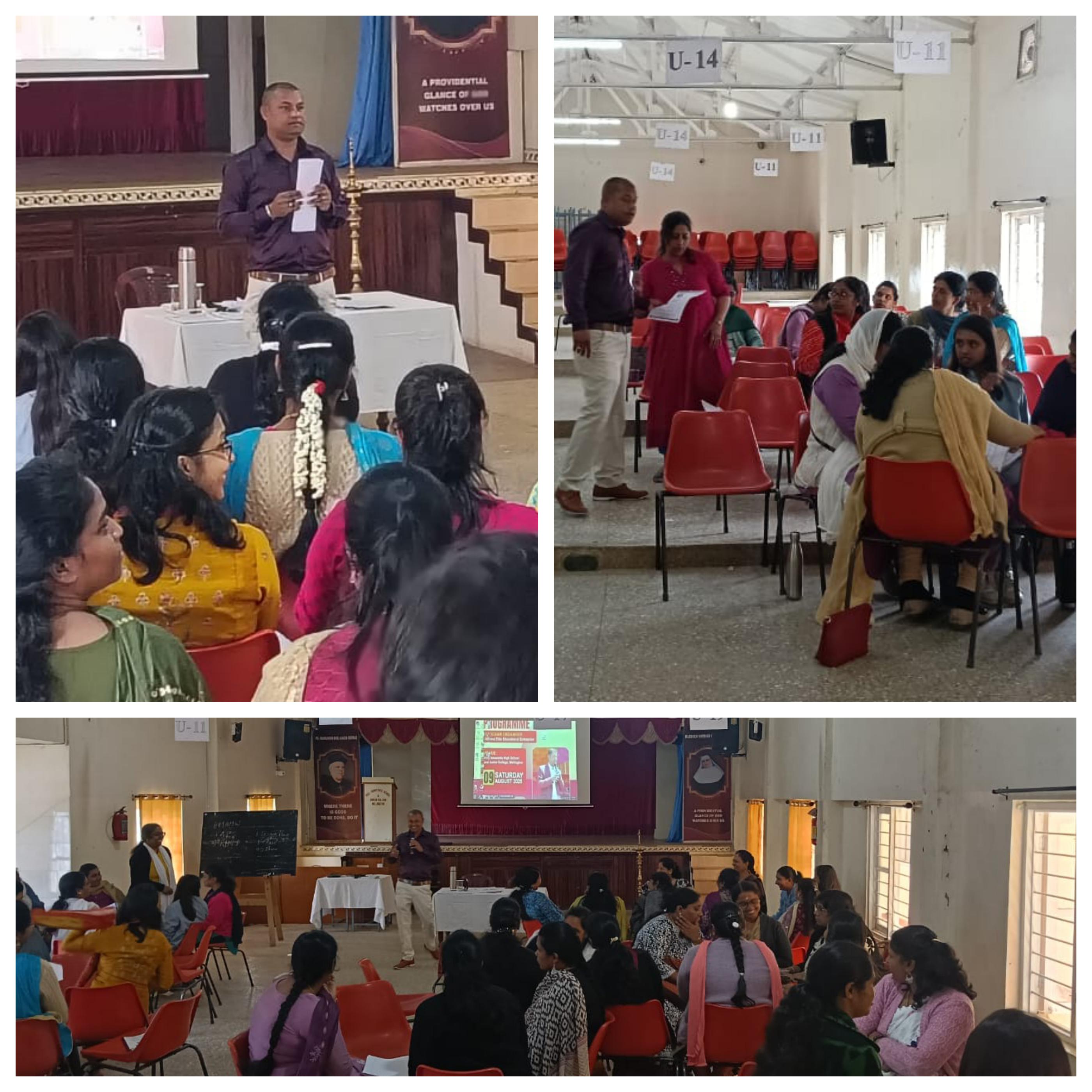 As part of the programme, subject –wise group activities were conducted, where teachers collaboratively framed lesson plans. The session emphasized the important of designing well-structured lesson plans, setting clear learning outcomes and using precise, disruptive language. Dr. Yeshwanth stressed the need for clear and specific instructions, cautioning against generalization.