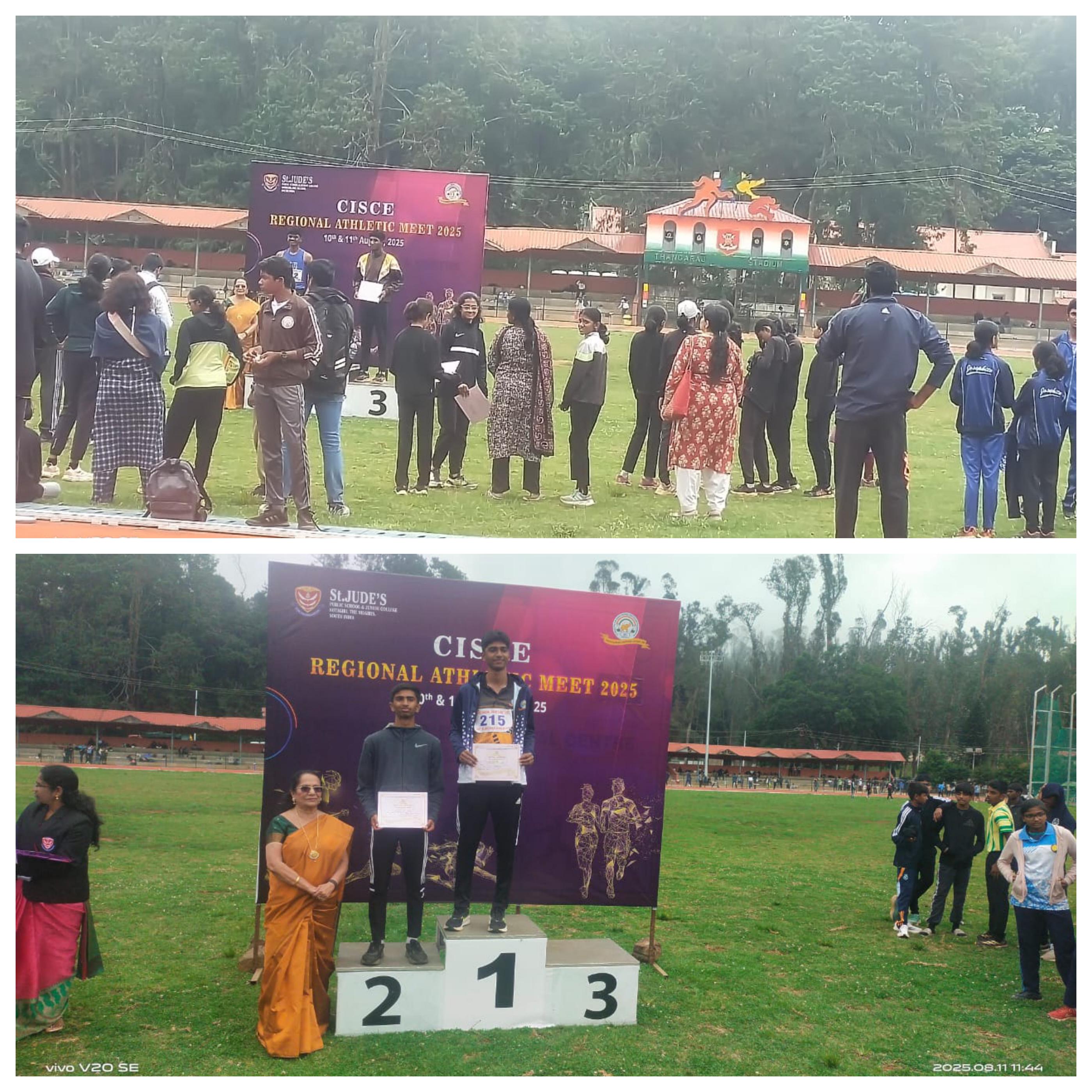 10.08.2025- The regional CISCE Athletics meet 2025 was organized by St. Jude’s Public School, Kotagiri. This meet was for two days August 10 and August 11. It was held at Thangaraj Stadium (MRC), Wellington Coonoor. Twenty schools had participated from our school had participated in the under 14, under 17 and under 19 category, in various events.