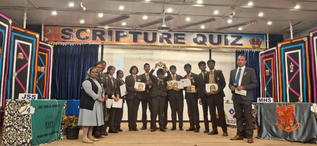 AHESSN SCRIPTURE QUIZ for the academic year 2025-2026 was conducted by Stanes Anglo Indian Higher Secondary School. The theme of the Quiz was “ UNBOUND”. The competition was conducted under 2 category- High school and Higher secondary level, with 10 members in each category. Each category had six rounds, and teams participated in each category. The two teams had three rounds each. Eleven schools had participated in the high school category. Though our high school did their best to compete with other schools they couldn’t reach the first. Nine schools participated in the Higher Secondary category and our children took second with a different of one point from the first position.
