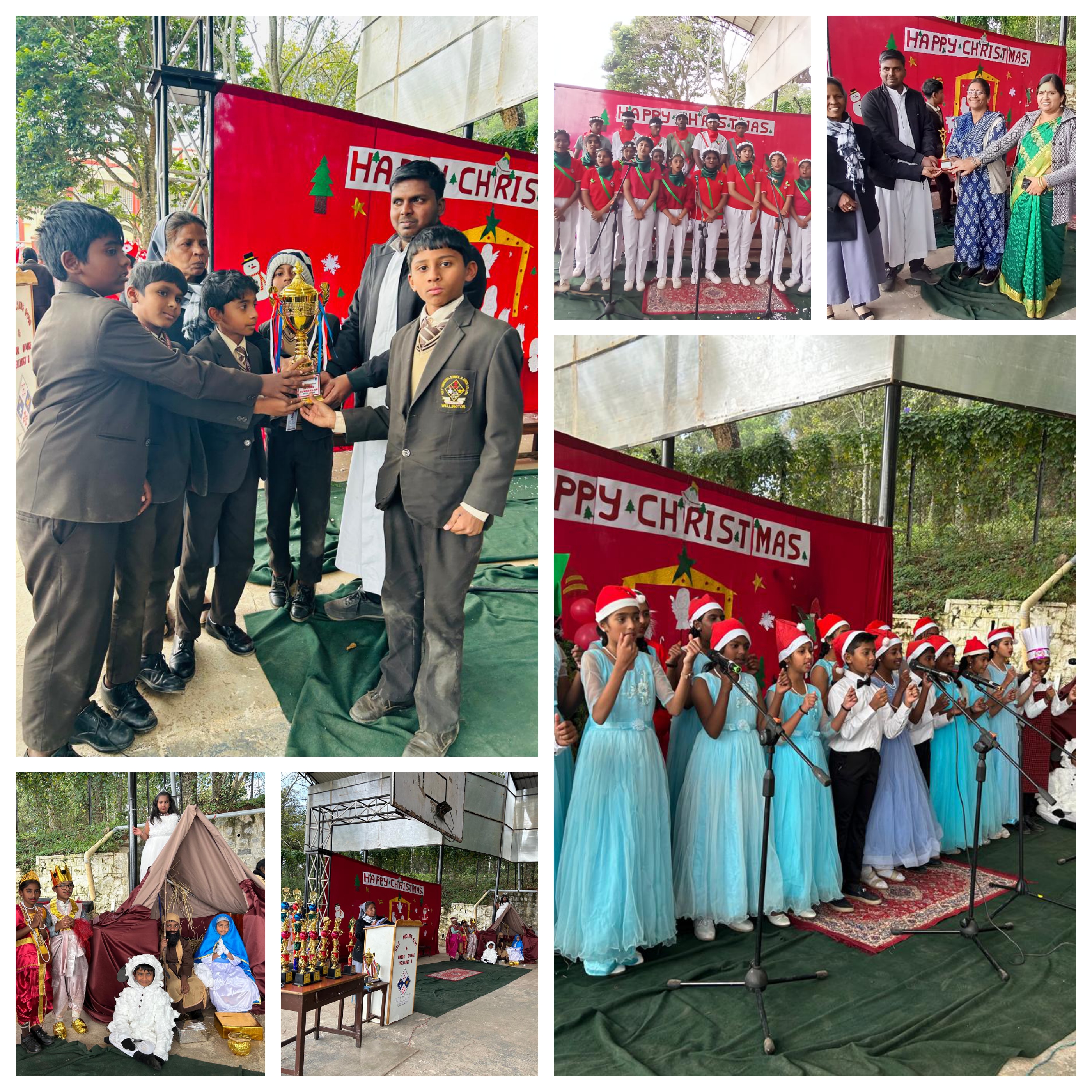 19.12.2025: The second term exam concluded successfully, after which both students and teachers enthusiastically prepared for the Christmas celebration. The school campus was filled with joy and festive cheer as students participated actively in various programmes. Students of class 1 and 2 presented a beautifully co-ordinated live tableau , conveying the message of love, peace and goodwill associated with Christmas.  The middle school students added melody to the celebration by singing Christmas Carols, creating a joyful and uplifting atmosphere.  Students of class 7, 8 9 performed a meaningful Christmas message, skit, highlighting the value of kindness sharing, compassion.  The performance affected the students creativity, teamwork and understanding of the true spirit of Christmas.  The programme concluded with the Principals Christmas message in which she emphasized the importance of the love, forgiveness and service to humanity.  She encouraged students to practice these values not only during festive season but throughout their lives.  She appreciated the efforts of students and teachers for making the celebration memorable and wished everyone a joyful Christmas and a blessed New Year.
