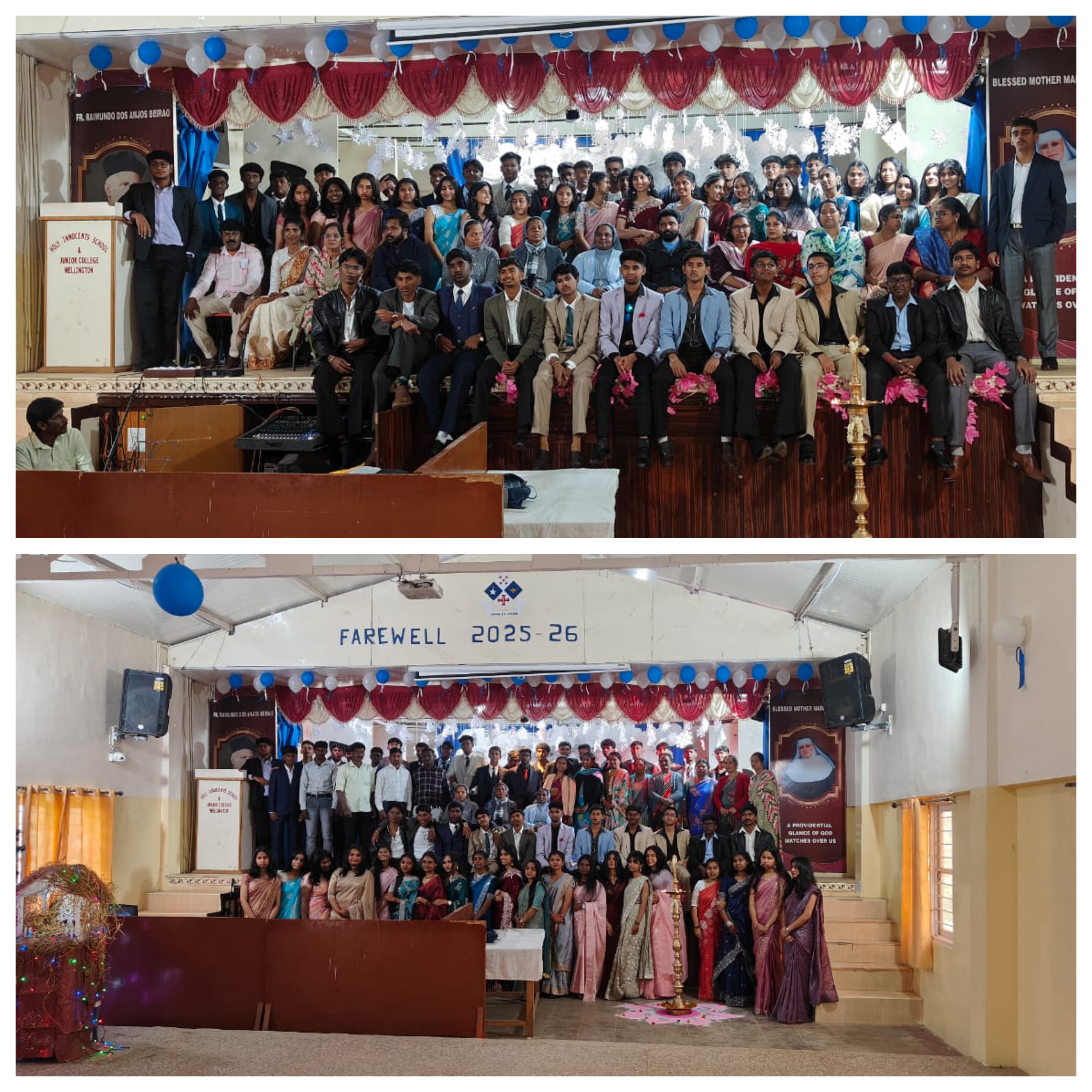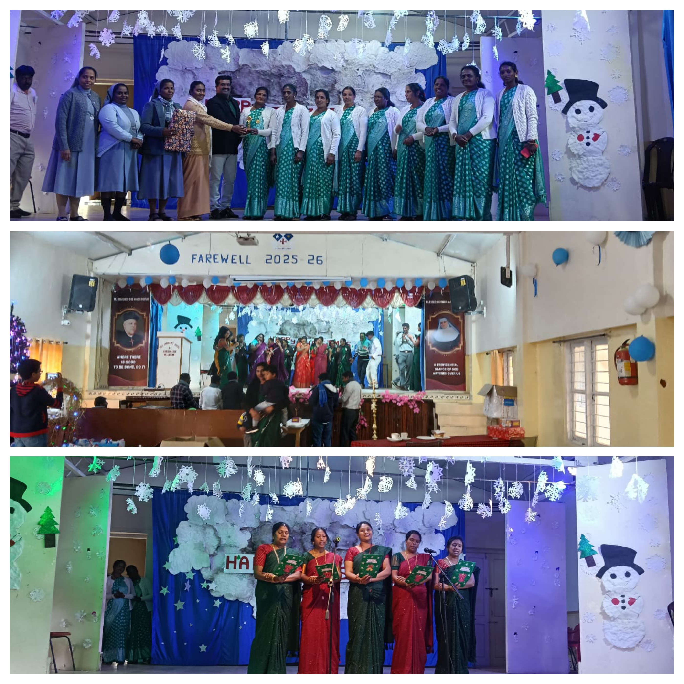 20.12.2025: Grade 11 students hosted a farewell programme for the grade 12 students under the guidance of Ms. Varalakshmi.  The event was organized in the hall which was beautifully decorated.  The celebration commenced with the lighting of the lamp by the Principal Sr. AviaVaz, Sr. Annamma, Sr. Brijeet, the former Head Boy and Head Girl along with Ms. Varalakshmi, symbolizing wisdom, hope and new beginnings.