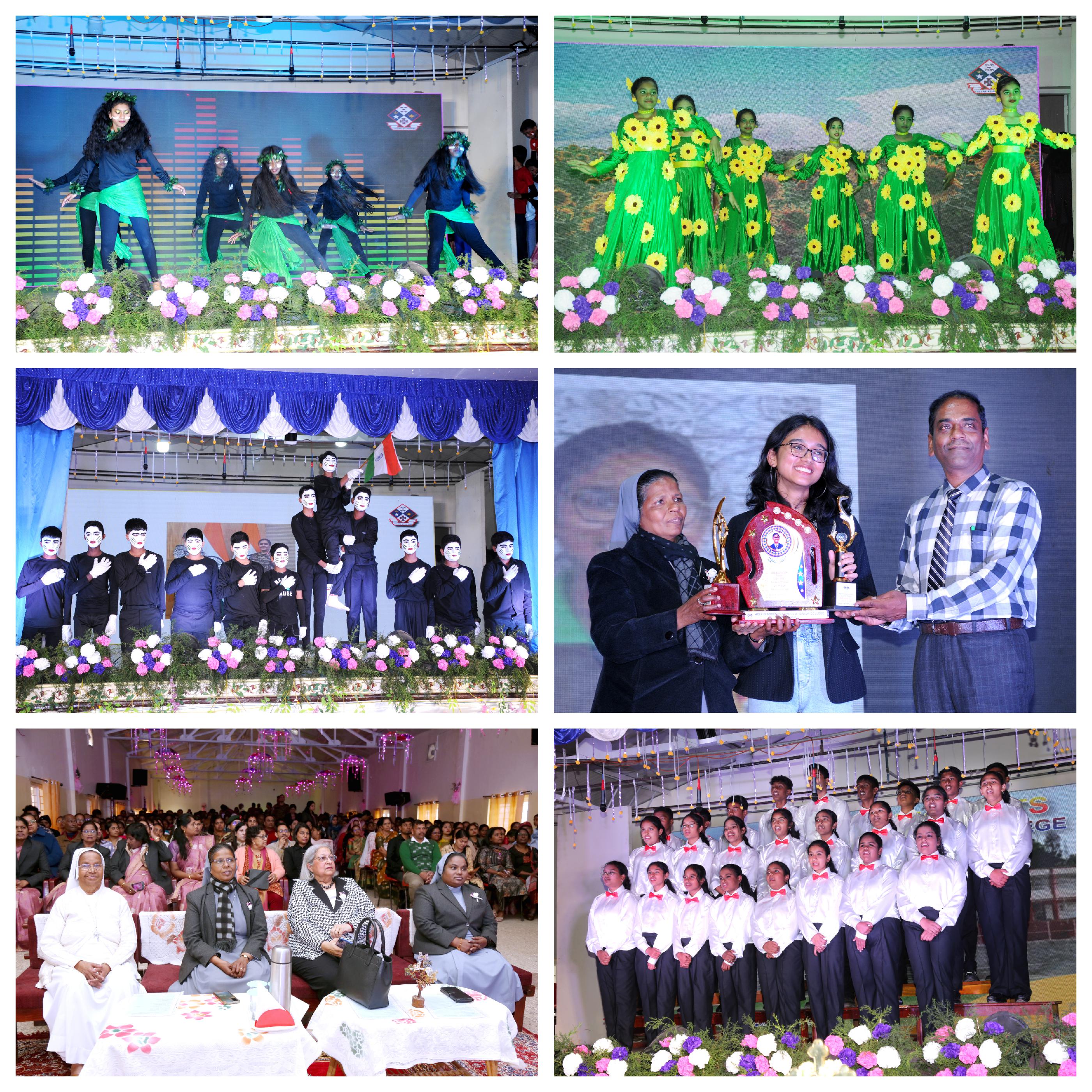 The first show for KG to grade IV commenced in the morning at 9.30 a.m. The chief guest for the grand celebration was Ms. Diana Cyrus Barucha, founder of Kinder trust, Coonoor. The morning commenced with the ceremonial lighting of the traditional lamp by the esteemed chief guest, alongside the principal Rev. Sr. Avia Vaz and other dignitaries. Sister Principal gave a warm welcome to the gathering and the Annual Report for the academic year 2024-25 was presented to everyone present. The first performance was a welcome dance by the troupe. The tiny tots of the pre-kg enchanted the audience with their innocent honey-bee dance. This was followed by a jungle dance by the blooming buds of the upper kindergarten. It was a mesmerize the primary students fusion of classical Bharatanatyam, Bhangra, Kolattam, Manipuri dance and the Ghoomar Dance. The performance captivated the audience with their colourful costumes and synchronizing steps. They also brought alive the national symbols of our country the grade I and II students presented a song on the national symbols of India. The highlight of the morning was a hilarious skit on the Kohinoor guest “It was a whimsical blend of history, pop culture and digital satire. Beyond laughter the play depicted how we value heritage, legacy and national treasures in the age of social media. The play won many accolades from the audience and the chief guest. The highlight of the morning was the cultural extravaganza by the senior classes- a scintillating dance performance on the theme” Incredible India.: Interwoven with these artistic display were the academic students were honoured by our Principal. They were presented with trophies and certificates. The event peaked with the chief guest’s inspiring address, urging students to be kind, mindful about nature. As the final notes of the National Anthem echoed, the audience appreciated the explosive potential of our students. The show concluded at 12 noon.