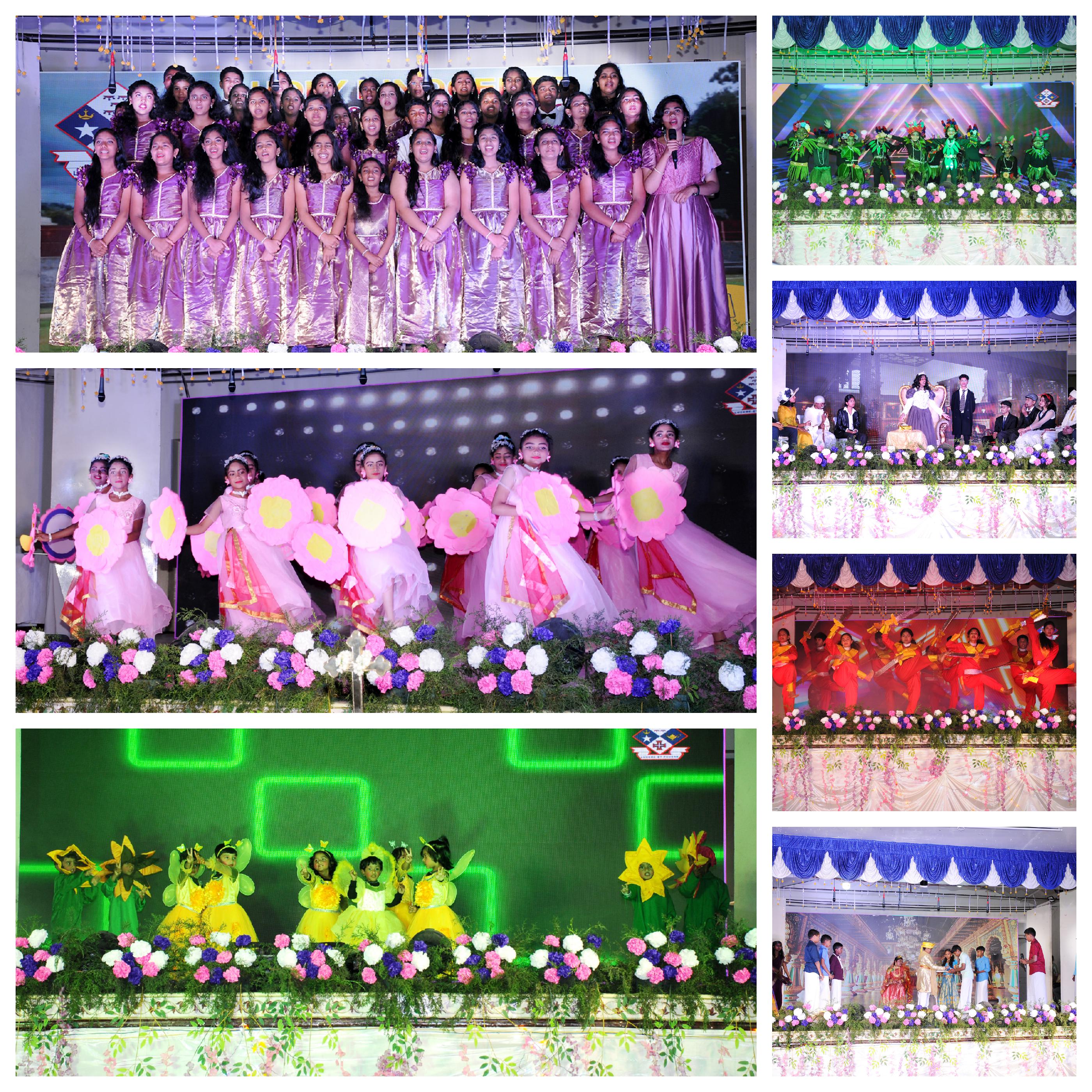 The second show for grade V to XI commenced at 3.00 p.m. Mr. V.K Parthasarathy, District Educational Officer (Private Schools) and Headmasters of Nedukula Government School graced the occasion as the chief guest with his presence. Fr. Felix, Assistant Paris Priest was the esteemed guest of honour. The celebration kicked –off with the traditional lamp lighting ceremony. This was followed by a solemn prayer song by the choir. Our Principal welcomed the gathering with a warm speech and presented the Annual Report.